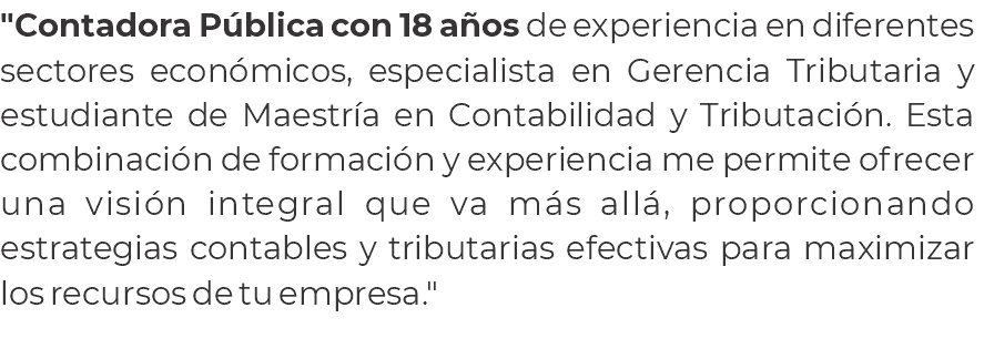 Descubre cómo optimizar tu gestión contable y financiera con ayuda de una experta con más de 18 años de experiencia.